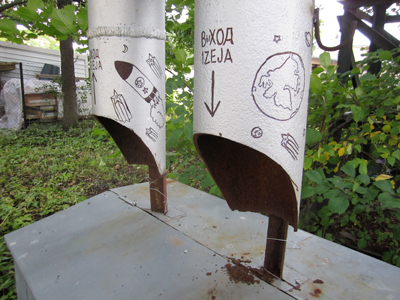 Installations created at Totaldobže art centre in Riga, Latvia, as part of the exhibition Art-Caching, curated by Laura Prikule. The installations look at where the factory gremlins - former Russian household spirits repurposed as factory guards during the Soviet shift from agriculture to industry - lived and worked at the VEF electotechnical factory, one of Latvia's largest factories which supplied radios, cameras, phones and other electrical and electronic goods to the entire Soviet Union.